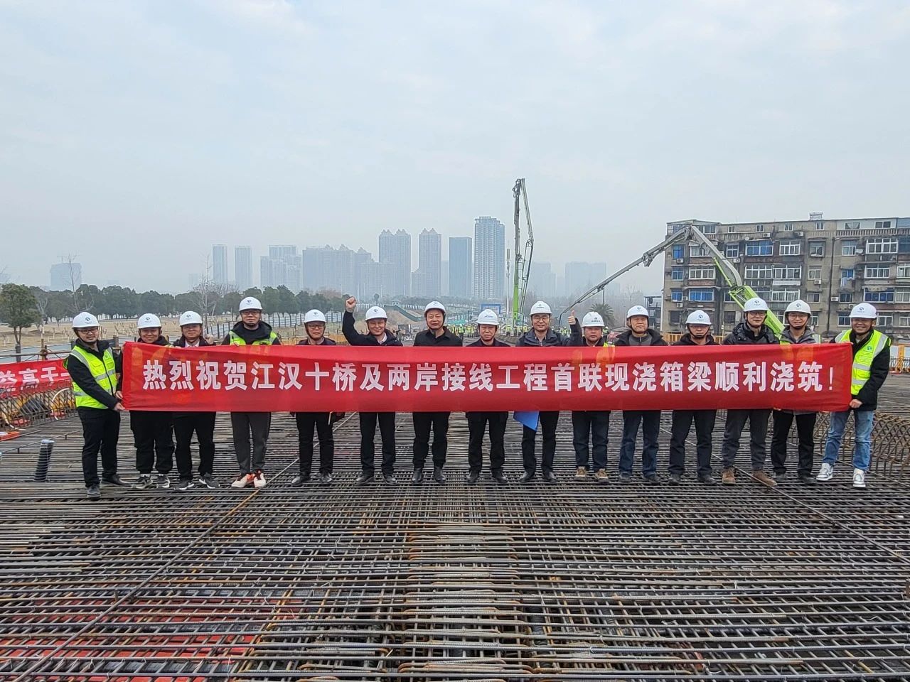 1月31日,歷經(jīng)25個(gè)小時(shí),江漢十橋全線首聯(lián)現(xiàn)澆箱梁混凝土澆筑完成,標(biāo)志著項(xiàng)目正式啟動(dòng)上部結(jié)構(gòu)施工,為后續(xù)現(xiàn)澆梁澆筑積累了寶貴的經(jīng)驗(yàn),為實(shí)現(xiàn)項(xiàng)目總工期目標(biāo)奠定堅(jiān)實(shí)基礎(chǔ)。
